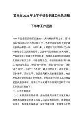 某局在2023年上半年党建工作开展情况和下半年工作计划汇报 2023年是全面贯彻落实党的二十大精神的开局之年,是“十四五”规划承上启下的关键之年,也是全面提高机关党的建设质量的重要一年。今年以来,*局持以习近平新时代中国特色社会主义思想为指导,认真学习贯彻党的二十大精神,严格落实全*党建工作安排部署,围绕机关基层组织建设认真开展好相关工作,不断引导党员、干部深刻领悟“两个确立”的决定性意义,增强“四个意识”、坚定“四个自信”、做到“两个维护”,当好“三个表率”、建设模范机关,锐意进取、埋头苦干、真抓实干,全面提高机关党的建设质量,充分发挥基层党组织战斗堡垒作用,为推动*经济社会高质量发展提供...