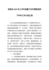某局在2023年上半年党建工作开展情况和下半年工作计划汇报