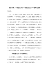党课讲稿:坚决把“两个确立”的实践要求转化为奋进新征程、喜迎二十大的强大动力和实际行动同志们:党确立习近平同志党中央的核心、全党的核心地位,确立习近平新时代中国特色社会主义思想的指导地位,是党的十八大以来取得的最重要的政治成果,具有充分的理论依据、历史依据和现实依据。深刻领悟“两个确立”的决定性意义,坚决做到“两个维护”,关键是自觉做“两个确立”的坚定信仰者、忠诚实践者,始终在党爱党、在党言党、在党忧党、在党为党,把“两个确立”的实践要求转化为奋进新征程、建功新时代的强大动力和实际行动。一、牢记“国之大者”,提高政治判断力、政治领悟力、政治执行力“国之大者”,事关全局、事关根本、事关未来、事关...