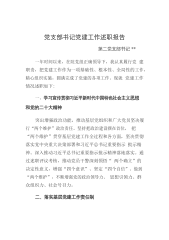 党支部书记党建工作述职报告第二党支部书记**一年时间以来,在院党组正确领导下,我认真履行党建职责,把党建工作作为一项基础性、根本性、全局性的工作,精心组织实施,圆满完成了党建的各项工作。现就党建工作情况述职如下:一、学习宣传贯彻习近平新时代中国特色社会主义思想和党的二十大精神突出增强政治功能,推动基层党组织和广大党员坚决履行“两个维护”政治责任。坚持把政治建设摆在首位,把“两个维护”贯穿基层党建工作全过程和各方面,坚决贯彻落实党中央重大决策部署和习近平总书记重要指示批示精神。深入推动习近平总书记重要指示批示精神落地落实。通过述职评议考核,推动党员干警深刻领悟“两个确立”的决定性意义,增强“四个...