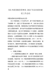 XX州政务服务管理局2022年法治政府建设工作总结州委全面依法治州委员会办公室:2022年是党的二十大召开之年,是“十四五”规划承上启下的重要一年,也是“八五”普法的关键一年,为深入推进法治政府建设工作的开展,我局坚持以习近平新时代中国特色社会主义思想为指导,把习近平法治思想作为全局普法的头等大事和首要任务,深入学习贯彻党的二十大精神,全面贯彻落实十九大及十九届历次全会精神,深刻领悟“两个确立”的决定性意义,认真贯彻落实《中共XX州委XX州人民政府关于印发的通知》等文件精神,以加强队伍建设、强化法治观念、规范行政行为、服务科学发展为重点,全力推进依法行政进程,加快建设法治政府,现将我局2022...