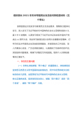 组织部长2021年度党史学习教育五个带头专题民主生活会对照检查材料按照此次专题民主生活会要求,我深入学习了相关文件材料,认真听取了各方面意见建议,结合自身思想和工作实际,进行了梳理检视和深刻的自我剖析,现对照检查如下:一、存在的突出问题1.带头深刻感悟“两个确立”的决定性意义,深刻感悟党坚持把马克思主义同中国具体实际相结合、同中华优秀传统文化相结合的非凡历程,全面贯彻习近平新时代中国特色社会主义思想,树立正确党史观,坚定信仰信念信心,增强“四个意识”、坚定“四个自信”、做到“两个维护”方面。一是政治理论学习还有差距。对习近平新时代中国特色社会主义思想,尤其是“两个确立”重大理论,能够通过集中学...