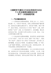 主体教育专题民主生活会和组织生活会个人发言提纲问题原因分析和下一步措施通用版