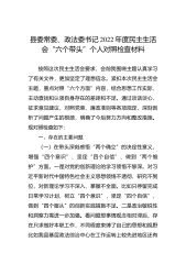 县委办公室主任专题民主生活会"六个带头"对照检查材料根据xx统一部署和本次民主生活会的要求,这次民主生活会的主题是:全面贯彻习近平新时代中国特色社会主义思想,深刻领悟“两个确立”的决定性意义,增强“四个意识"、坚定"四个自信”、做到“两个维护”,团结带领党员干部以奋发有为的精神贯彻落实党的二十大作出的重大决策部署。近段时间,我深入学习党的二十大精神,认真研读习近平总书记代表十九届中央委员会所作的《高举中国特色社会主义伟大旗帜,为全面建设社会主义现代化国家而团结奋斗》的报告,仔细阅读《党的二十大报告辅导读本》《党的二十大报告学习辅导百问》等辅导材料,聚焦民主生活会主题,广泛征求意见建议,认真对照...