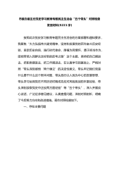 市委办副主任党史学习教育专题民主生活会“五个带头”对照检查发言材料(5221字)按照此次党史学习教育专题民主生活会的方案部署和通知要求,我聚焦“大力弘扬伟大建党精神,坚持和发展党的百年奋斗历史经验,坚定历史自信,践行时代使命,厚植为民情怀,勇于担当作为,团结带领人民群众走好新的赶考之路”这个主题,坚持把自己摆进去、把职责摆进去、把工作摆进去,在认真学习的基础上,严格对照“带头深刻感悟‘两个确立’的决定性意义、带头牢记我们党是什么要干什么这个根本问题、带头践行以人民为中心的发展思想、带头学习运用党在不同历史时期成功应对风险挑战的丰富经验、带头深刻汲取党史中正反两方面经验”等“五个带头”,深入开展...