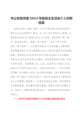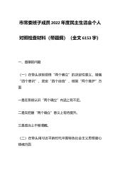 市常委班子成员2022年度民主生活会个人对照检查材料(带题纲)(全文6153字)