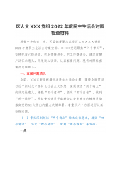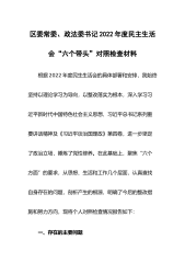 区委常委、政法委书记2022年度民主生活会对照检查材料(六个带头)