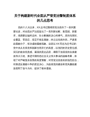 关于构建新时代全面从严管党治警制度体系的几点思考党的十八大以来,XX总书记围绕管党治党作了一系列重要论述,对全面从严治党提出了一系列新论断、新思想、新要求,强调要以猛药去疴、壮士断腕的决心和勇气,坚持无禁区、全覆盖、零容忍,坚定不移反腐败,持之以恒抓作风,严肃查处腐败分子,坚决遏制腐败现象。这是以XX同志为总书记的党中央从关系党和国家生死存亡的高度,以强烈的历史责任感、深沉的使命忧患感、顽强的意志品质,着眼于加强党的自身建设伟大工程、推进中国特色社会主义伟大事业的战略考量,体现了对严峻复杂形势的高度警醒,对管党治党使命的强烈担当,对推进反腐败斗争的坚定决心,为加强党的建设和党风廉政建设指明了奋...