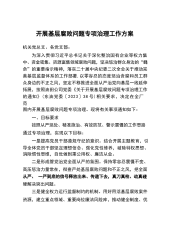 开展基层腐败问题专项治理工作方案机关党总支、各党支部:为深入贯彻习近平总书记关于深化整治国有企业等权力集中、资金密集、资源富集领域腐败问题,坚决惩治群众身边的“蝇贪”的重要指示精神,落实二十届中央纪委二次全会关于推动完善基层监督体系的工作部署,以零容忍的态度惩治贪腐和员工群众身边的不正之风,坚定不移推进全面从严治党向基层一线延伸拓展,按照油田公司党委《关于开展基层腐败问题专项治理工作的通知》(东油党委〔2023〕38号)相关要求,决定在全厂范围内开展基层腐败问题专项治理。现将有关事项通知如下:一、目标要求按照从严惩处、精准施治、有效防范、警示震慑的工作思路通过专项治理,实现以下目标:一是提高党...