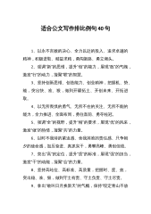 调查研究类排比句40例1.走到位、力戒走马观花不深入,问到位、力戒脱离主题太随意,说到位、力戒满口应承无原则,想到位、力戒敷衍做作不交心,做到位、力戒高高在上不作为。2.慰问可以“唠家常”,调研却需“不客套”;总结可以“绣花衣”,调研却需“开药方”;探索可以“等观望”,调研却需“急行军”。3.翻阅的是“补充完善”的材料,听到的是“反复斟酌”的汇报,看到的是“精心布置”的场景,见到的是“严格挑选”的群众。4.围绕中心、服务大局的“引领性”调研,解决问题、改进工作的“小切口”调研,总结经验、深化实践的“指导式”调研。5.多一些发现创新、少一些“翻版再版”,多一些真知灼见,少一些照本宣科,多一些“一...
