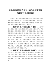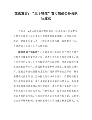 区委组织部部长在全市公务员队伍建设现场会研讨会上的发言近年来,我区坚持把建设新时代公务员队伍作为干部队伍建设的重要举措,紧扣公务员队伍源头储备、培训管理、履职担当等关键环节,着力打造整体结构优、综合素质强、干事劲头足的高素质专业化公务员队伍。一、聚焦“选”字,下好队伍建设“一盘棋”。一是科学精准招录。发挥考试录用选拔优秀人才的主渠道作用,严格贯彻落实公务员招录各项政策,全面掌握区直单位、街道人员配置和用人需求等情况,科学制定招录计划。近三年来,共招录公务员65人(含选调生27人),专业涵盖法学、经济学、农学等紧缺专业。二是严格交流程序。规范做好公务员转任、调任工作,严格把关转任、调任人选资格,...