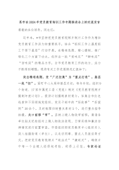 在2024年全省党校工作重点任务年中推进会上的汇报发言尊敬的各位领导,同志们:“为党育才、为党献策”是党校的独特价值所在,做好新时代的传道、授业、解惑工作,是党校安身立命的根本。中共**市委党校深入学习贯彻习近平总书记关于党校工作的重要论述,认真落实基本培训理念,扎实践行“为党育才、为党献策”初心,担当“传道授业解惑”使命,勤耕党校事业“责任田”,有组织、有计划、有步骤地开展基本培训,实现全员培训、全面覆盖,推动新时代党校事业高质量发展。现将有关工作进展情况汇报如下:一、聚焦“三个着力”,确保基本培训对象全面覆盖一是着力提升培训能力。强化培训需求导向,精准制定基本培训计划,规范优化培训对象、班...