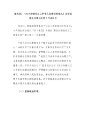微党课:《关于加强社区工作者队伍建设的意见》为指引建设过硬的社区工作者队伍同志们,根据街道党委关于社区工作者培训计划安排,今天借此机会我以“以《意见》为指引建设过硬的社区工作者队伍”跟大家上一次微党课。习近平总书记曾前往多个城乡社区进行实地考察时指出“当前社区工作重点是打造一支素质优良的社区工作队伍,壮大社区工作团队,管理重心从上层转移到基层,并切实提高社区服务质量。”社区工作者参与相关治理工作,为基层群众提供基础性社区服务,同时也是社区建设中的重要一员。中共中央办公厅国务院办公厅《关于加强社区工作者队伍建设的意见》中明确指出加强社区工作者队伍建设,事关保障人民安居乐业,事关维护社会安定有序,...