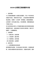 2023XX公司员工培训提升计划一、提升思路XX公司肩负着组建XX全国试点的重任,开业一年仍存在队伍建设不到位、营销手段不先进、人员创新意识薄弱等等突出短板。为确保“N次改革”有序推进,突破发展瓶颈,必须培养一支专业能力突出、综合素质高、精神面貌佳的干部员工队伍。本计划目标是力争在XX年底基本建成分层次的高效优质的课程晋升体系,全面实施员工培训积分制考核,同时与干部晋升、工资薪酬挂钩。二、指导思想(一)服务业务,促进发展(二)分级培养,强化考核(三)优质高效,成本控制(四)整合资源,全员提升三、提升目标(一)规范课程培训标准体系规范课程开发流程,针对性地设计培训项目,合理规划课程,系统化地提供...