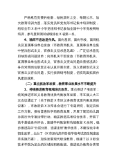 严格规范党费的收缴,做的及时上交、每期公示。加大教育培训力度,落实党员和党支部书记集中培训制度,组织全市X名中小学党组织书记参加全国中小学党校网络培训,参与度和测试成绩排在X省第一名。4、驰而不息改进作风。面向基层、面向学校、面局机关及直属事业单位发放《市教育局机关、直属事业单位集中整治形式主义、官僚主义征求意见函》,广泛征求意见归纳形成问题清单;向局机关干部发放《市教育局机关、直属事业单位形式主义、官僚主义突出问题自查情况表》各自对照岗位职责正在认真开展自查。深入查摆形式主义官僚主义存在问题,实行挂牌销号制度,切实巩固拓展作风建设成果。(二)重点抓改革发展,教育事业发展水平不断提升1、持续推...