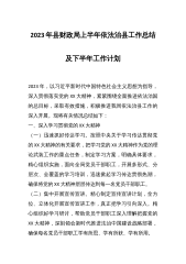 2023年县财政局上半年依法治县工作总结及下半年工作计划2023年,以习近平新时代中国特色社会主义思想为指导,深入贯彻落实党的XX大精神,紧紧围绕全面推进依法治国的总目标,采取有效措施,积极推进我局依法治县工作的深入开展。现将有关情况总结如下:一、深入学习贯彻党的XX大精神(一)迅速抓好传达学习。按照中央关于学习传达贯彻党的XX大精神的有关要求,把学习党的XX大精神作为党的理论武装工作的重点任务,制定学习方案,明确具体要求,精心组织实施,面向全局党员干部职工,开展多形式、分层次、全覆盖的学习培训,迅速掀起学习传达贯彻热潮,确保将党的XX大精神层层传达到每一名党员干部职工。(二)集中开展宣传宣讲...