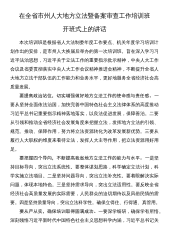 在全省市州人大地方立法暨备案审查工作培训班开班式上的讲话本次培训班是根据省人大法制委年度工作要点、机关年度学习培训计划作出的安排,是市州人大换届后举办的第一次培训班。旨在深入学习习近平法治思想,习近平关于立法工作的重要指示批示精神,中央人大工作会议及省委贯彻落实中央人大工作会议精神推进会精神,不断提升全省人大地方立法干部队伍的工作能力和业务水平,更好地服务全省经济社会高质量发展。要提高政治站位,切实增强做好地方立法工作的使命感与责任感。一要从坚持全面依法治国,加快完善中国特色社会主义法律体系的高度推动习近平总书记重要指示精神落地落实,以良法促进发展,保障善治。二要从引领和推动全省经济社会发展角...