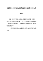 市水利局2023年度法治政府建设工作总结及2024年工作安排根据《XX市贯彻<法治政府建设实施纲要(2021—2025年)>实施方案》和《XX市2023年法治政府建设工作计划》的相关要求,现将我局法治政府建设工作进展情况报告如下:一、加强党对法治政府建设的领导,确保正确的政治方向(一)深入学习习近平法治思想,加强依法行政学习力度,提升水行政执法能力。一是将习近平法治思想列入理论学习中心组学习内容,同时列入干部培训的必修课程组织开展《中共中央关于全面推进依法治国若干重大问题的决定》以及法治建设“一规划两纲要”等全面体现习近平法治思想的法律法规专题学习和集中培训工作。二是加大“行政三法”学习力度。...