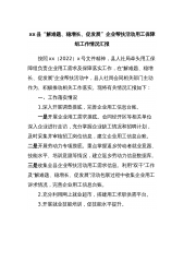 xx县“解难题、稳增长、促发展”企业帮扶活动用工保障组工作情况汇报按照xx(2022)x号文件精神,县人社局牵头用工保障组负责企业用工需求及保障落实工作,在“解难题、稳增长、促发展”企业帮扶活动中,县人社局会同相关部门主动作为、积极推动相关工作落实。现将有关情况汇报如下:一、工作落实情况1.深入开展调查摸底,完善企业用工信息台账。一是开展企业用工需求摸底。会同经开区等相关单位深入企业进行走访,充分掌握企业缺工情况和招聘计划,及时采集并审核招工岗位信息,建立企业用工信息台账。二是开展劳动力专项摸底。重点掌握返乡劳动者就业意愿、技能水平、培训意愿等情况,建立返乡劳动力信息数据库。三是收集全县企业帮...