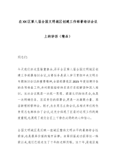 在XX区第八届全国文明城区创建工作部署培训会议上的讲话(精品)同志们:今天我们在这里隆重集会,召开全区第八届全国文明城区创建工作部署培训会议,主要任务是深入学习贯彻中央文明办专题培训会议的重要精神,全面部署我区2025年度创建评估的各项准备工作,并对新版指标体系进行系统解读和深入培训。这次会议既是一次统一思想、提高认识的动员会,也是一次明确任务、压实责任的部署会,更是一次凝聚力量、再启新程的誓师会。刚才,永永同志主持会议,各相关单位的负责同志也都参加了会议,这充分体现了区委对这项工作的高度重视,也展现了我们全区上下势在必得的决心和信心。全国文明城区是反映一座城区整体文明水平的最高综合性荣誉,也...