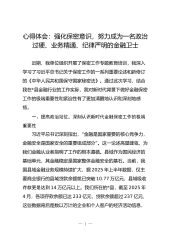 心得体会:强化保密意识,努力成为一名政治过硬、业务精通、纪律严明的金融卫士