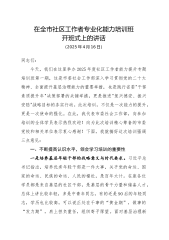 工委常务副书记在2025年党组织书记综合能力素质提升专题培训班开班式上的讲话同志们:今天,我们齐聚于此,共同开启党组织书记综合能力素质提升专题培训班。此次培训是在全面推进中国式现代化新征程、深化党的建设新的伟大工程关键节点举办的,意义深远。各位书记身处基层前沿,是落实党中央决策部署的“第一公里”责任主体,能力素养关乎党在基层的执政根基稳固、高质量发展实践成效与治理聚现代化进程。培训旨在为大家赋能增智,锻造一支政治强、本领高、作风硬的基层党组织带头人队伍。我们必须深刻认识到,加强党组织书记能力建设,是巩固党的执政基础的必然要求,是适应时代发展需求的战略举措,更是回应人民群众期盼的根本保障。一、提...