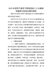 2023年领导干部学习贯彻党的二十大精神专题研讨班培训情况报告现将XXX领导干部学习贯彻党的XX大精神专题研讨班有关情况汇报如下。2023年XX月XX日至XX月XX日XX组织部牵头在XXX举办专题研讨班,聚焦学习贯彻党的XX大精神,结合省委十一届三次全会工作部署和市委五届四次全会工作要求,对XX进行了轮训,通过专题辅导、分组讨论、闭卷考试、学员论坛等方式,持续提升补短板、强弱项、扬优势、保安全、促团结能力。至此,连同XX培训班和XX培训班,全市累计培训县处级领导干部XX名,做到市管干部党的XX大精神培训全覆盖。一、主要培训成效(一)凝聚了思想共识。市委高度重视此次培训,XX亲自审定教学方案和课...