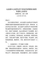 在县委中心组理论学习和读书班暨警示教育专题班上的讲话县委副书记、县长文阁(2019年4月9日)同志们:经过大家的共同努力,此次县委中心组理论学习和读书班暨警示教育专题班圆满完成各项学习任务,即将结束,在此向同志们表示祝贺。这次县委中心组理论学习和读书班暨警示教育专题班虽然时间不长,但课程安排紧凑、活动组织有力。既请了专家授课,也走出课堂进行了实地观摩。刚才,大家结合工作实际,进行了分组讨论。谈的既有高度、也有深度,认识很到位,思考很全面,体会很深刻。希望活动结束后,大家认真学习感悟、相互学习借鉴,学以致用,自觉投身发展实践。根据安排,下面,我对本次学习培训作一小结。一、活动组织有力,学习成效十...