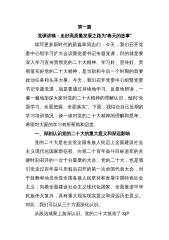 党课:深入学习贯彻党的大会精神在新时代新征程上展现新担当新作为同志们:通过今年以来的主题教育、几次专题学习和公安部开展的政治培训,以及县委组织部举办的科级干部轮训班,相信大家对党的二十大精神已经有了深刻的学习认知。今天专门安排这堂党课,为大家宣讲党的二十大精神,就是要和全体民辅警一起,再次认真学习领会党的二十大报告核心内容和新修订的党章内容,结合实际落实好党的二十大对各项工作的新要求新部署,共同勉励大家牢记初心使命,坚定理想信念,以实际行动积极响应党中央号召,不断开创xx公安工作高质量发展新局面,为实现中华民族伟大复兴贡献公安力量!下面就以《深入学习贯彻党的二十大精神,在新时代新征程上展现新担...