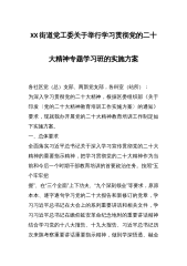 XX街道党工委关于举行学习贯彻党的XX大精神专题学习班的实施方案