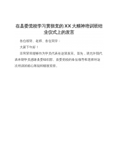 回望来时路砥砺向前行学员在结业仪式上的发言2021年四川省党校系统党性教育师资专题培训班(第2期)学员李闻鑫(2021年10月29日)尊敬的各位领导、各位同学:大家好!非常荣幸能有这样的机会与大家一起分享交流在瑞金干部学院参加培训的心得体会。XJP总书记多次强调:“历史是最好的教科书,对我们GC党人来说,中国革命历史是最好的营养剂,多重温这些伟大历史,心中就会增加很多正能量”。通过本次培训学习后,我们小组总结出以下三点体会:一、感恩之心,感谢有您首先,必须感谢瑞金干部学院的领导和老师,给我们提供了丰富精彩的教学课程和周到温馨的教学环境,特别是我们的班主任文艳芳老师从赣州接机到安排住宿,从车上讲...