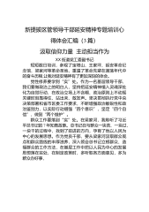 新提拔区管领导干部延安精神专题培训心得体会汇编(3篇)汲取信仰力量 主动担当作为XX街道党工委副书记短短数日培训,参观了宝塔山、王家坪、延安革命纪念馆、梁家河等革命圣地,重温了革命先辈在激荡年代中的奋斗历程,让我对延安精神有了更加深刻的体会。党性修养要学到“实”处。作为一名基层领导干部,我们要做政治上的明白人,坚持把延安精神植入灵魂深处化为自觉行动,在政治立场上不含糊、政治原则上不动摇关键时刻靠得住、站出来、敢发声。坚决贯彻执行党中央决策部署和省市区委工作要求,不断增强政治敏锐性和政治鉴别力,以实际行动增强“四个意识”,坚定“四个自信”,做到“两个维护”。群众工作要落到“实”处。在梁家河,我...