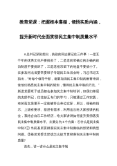 教育党课:把握根本遵循,领悟实质内涵,提升新时代全面贯彻民主集中制质量水平