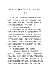 中共XX市XX区委书记2022年度述法报告2022年,我深入学习贯彻习近平法治思想,充分发挥党政领导干部“关键少数”示范带动作用,较好完成全年法治建设各项工作任务。今年以来各2次市场主体满意度测评、基本公共服务群众满意度测评,均列县市区第1位。一、学习贯彻习近平法治思想情况深入学习贯彻党的二十大精神,将习近平法治思想学习培训作为一项重点工作安排部署。区委常委会集中学习习近平法治思想,参加区委理论学习中心组习近平法治思想、重大行政决策专题讲座2次,认真研读《论坚持全面依法治国》《习近平法治思想学习纲要》,深刻领会习近平法治思想的重大意义、精神实质、实践要求。在“XX融媒”及区政府门户网站开设习近...