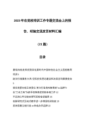 (21篇)2023年在党校培训工作专题交流会上的报告、经验交流发言材料汇编