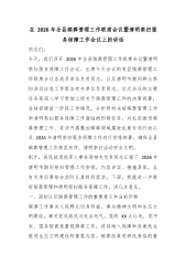 在2026年全县殡葬管理工作联席会议暨清明祭扫服务保障工作会议上的讲话同志们:今天,我们召开2026年全县殡葬管理工作联席会议暨清明祭扫服务保障工作会议。出席今天会议的有县殡葬管理工作联席会议各成员单位负责同志,以及清明节期间群众祭扫活动应急工作组各有关单位负责同志。这次会议的主要任务是深入学习贯彻上级关于殡葬管理工作的决策部署,总结回顾前一阶段工作情况,分析研判当前殡葬管理工作和清明祭扫服务保障工作面临的形势任务,对扎实推进殡葬管理工作、有序开展整治殡葬领域腐败乱象专项行动以及2026年清明祭扫服务保障工作进行安排部署,确保全县殡葬管理工作规范有序、清明祭扫活动安全文明。刚才,县民政退役军人...