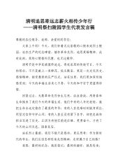 在2026年全区清明节祭扫服务保障和安全管理工作部署会议上的讲话同志们:大家好!今天,我们在这里召开全区清明节祭扫服务保障和安全管理工作部署会议,主要任务是深入贯彻落实国家、省、市关于做好清明节祭扫工作的系列决策部署,分析研判我区当前面临的形势和任务,对今年的清明节祭扫服务保障和安全管理工作进行全面动员和周密安排。近日,民政部、退役军人事务部、国家林草局、国家消防救援局等四部门联合印发了《关于做好2026年清明节祭扫工作的通知》,为我们指明了工作方向,提出了明确要求。我们必须深刻领会、坚决执行,确保全区人民度过一个平安、文明、祥和的清明节。清明节是中华民族缅怀先人、寄托哀思的传统节日,是传承和...