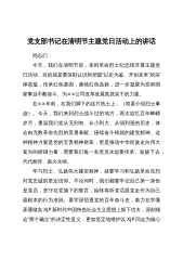 在清明节祭扫活动上的祭文(2016年4月1日)微信关注,办公室内参,海量文稿免费发放。各位烈属,同志们,同学们:时届清明,松柏凝翠,郁郁葱葱。今天,我们怀着无比崇敬的心情,肃立在庄严的二十六烈士纪念碑前,举行清明节祭扫活动,祭奠先烈的英灵,寄托我们的哀思,用我们最深情的思念和最崇高的敬意,告慰先烈在天之灵。XX是一片红色的热土。在战火纷飞的年代,大湖儿女为了中华民族的解放事业和新中国的建立,在极其艰苦的条件下,用自己的精神、热血和生命开展英勇不屈的斗争,铸就了巍巍丰碑。现在,我们所处的XXX二十六烈士陵园,就萦绕着26位新四军战士的英魂。七十多年前,新编第四军一师五十二团指战员,在这里先后击退...