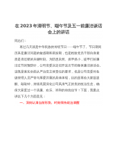在2023年清明节、端午节及五一前廉洁谈话会上的讲话