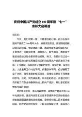 庆祝中国共产党成立100周年暨“七一”表彰大会讲话同志们:今天,我们欢聚一堂,怀着喜悦的心情,召开庆祝中国共产党成立100周年大会,缅怀党的历史,展望辉煌前程,总结先进经验,畅谈思路打算,激励全县各级党组织和广大党员进一步解放思想、提振信心,敢于担当、真抓实干推进全县经济社会更好更快发展。刚才,县委对在过去一年里表现突出的优秀基层党组织和优秀共产党员进行了表彰;X位基层一线同志作了很好的发言,很受教育,深受启发;大家虽然工作岗位不同、代表群体不同,但都展现了实干为民、敬业奉献的模范风采,值得全县党员干部尊重和学习。在此,我代表县委,向在座的各位,并通过你们向辛勤工作在全县各条战线上的共产党员,...