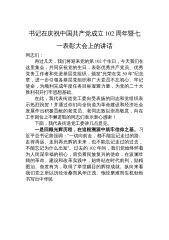 书记在庆祝中国共产党成立102周年暨七一表彰大会上的讲话