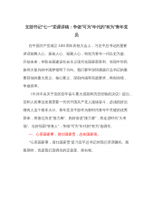 支部书记“七一”党课讲稿:争做“可为”年代的“有为”青年党员在中国共产党成立100周年庆祝大会上,习近平总书记的重要讲话鼓舞人心、振奋人心、凝聚人心,特别为青年一代以史为鉴、开创未来,夺取全面建设社会主义现代化国家新胜利、实现中华民族伟大复兴的中国梦指明了方向。我们要学深悟透践行总书记的重要回信的重大意义、核心要义、深刻内涵和实践要求,再创佳绩,争做表率。《中共中央关于党的百年奋斗重大成就和历史经验的决议》提出,党和人民事业发展需要一代代中国共产党人接续奋斗,必须抓好后继有人这个根本大计。青年党员干部作为新时代青年中关键的优秀群体,将接过历史“接力棒”、跑好奋进“接力赛”,将走进时代“大考场”...