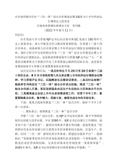在全省供销合作社“三位一体”综合合作推进会暨2021年上半年经济运行调度会上的讲话甘肃省省供销社理事会主任李书敏(2021年年8月11日)同志们:在全党深入学习贯彻XJP总书记在庆祝中国GC党成立100周年大会上重要讲话、深入开展党史学习教育的重要阶段,在省委十三届十四次全体会、省政府第九次全体会暨上半年经济运行调度会议刚刚结束之时,我们立即召开全省供销合作社“三位一体”综合合作推进会暨上半年经济运行调度会议,这是我省供销系统学习贯彻XJP总书记“七一”重要讲话精神和关于供销合作社工作重要指示精神的实际行动,也是落实省委省政府关于供销工作部署要求的具体举措。这次会议的主要任务:一是及时传达7月...