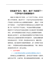 切实提升“定力、魄力、能力”为实现下一个百年奋斗目标接续奋斗根据XX局集中学习安排,从7月日下午开始,自己利用三天半的时间,重点学习了《习近平总书记在庆祝中国共产党成立100周年大会上的重要讲话精神》,通读了《中国共产党简史》《习近平新时代中国特色社会主义思想学习纲要》和《习近平关于“不忘初心、牢记使命”重要论述选编》,跟进学习了总书记在中央政治局第十五次集体学习时的重要讲话、在中央和国家机关党的工作会议上的重要讲话精神。通过静心读书学习,自己更加深切感受到习近平新时代中国特色社会主义思想的真理伟力和实践伟力,也更加清醒地看到自身在知与行、学与用,特别是在担当作为、履职尽责、精神姿态、能力素质...