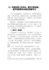【党课讲稿】七一专题党课上的讲话:新时代新成就、新形势新要求和新征程新作为