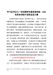 学习贯彻习近平总书记在庆祝中国共产党成立100周年大会上的重要讲话精神党课稿:深学细悟讲话精神忠诚履行监督职责习近平总书记在庆祝中国共产党成立100周年大会上的重要讲话中,总结、概括、提炼了我们党在百年奋斗历程中形成的伟大建党精神:“坚持真理、坚守理想,践行初心、担当使命,不怕牺牲、英勇斗争,对党忠诚、不负人民”。弘扬伟大建党精神,对于我们推进党的建设新的伟大工程具有重大现实意义和深远历史意义。下面,我结合党史学习教育特别是习近平总书记“七一”重要讲话精神和纪检监察机关的职能职责,就“继承发扬伟大建党精神,忠诚履行纪委监督职责”,谈谈自己的理解和认识。一、深入领会讲话精神,在完整准确理解伟大建...
