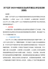 20220xx813:关于召开202X年组织生活会和开展民主评议党员情况报告