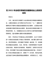 2021年干部在全域文明城区创建推动会上的发言材料