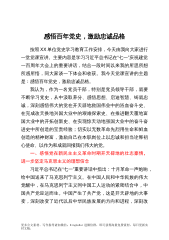 七一党课:学好百年党史汲取奋进力量努力推动乡村振兴同志们:今年是中国共产党建党100周年。根据办党组安排,今天由我为大家上一次党课。下面,结合近段时间开展的党史学习教育,我将结合自身党史学习和实际工作,以“学好百年党史汲取奋进力量努力推动乡村振兴工作向纵深发展”为题,从三个方面同大家一起学习交流。一、提高政治站位,充分认识在全党开展党史学习教育的重大意义“一切向前走,都不能忘记走过的路;走得再远、走到再光辉的未来,也不能忘记走过的过去,不能忘记为什么出发”。这是习近平总书记在纪念毛泽东同志诞辰120周年座谈会上的讲话中提到的。今年是中国共产党成立100周年。在全党开展党史学习教育,是党中央立足...