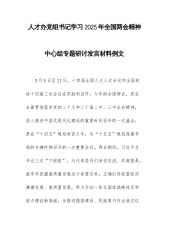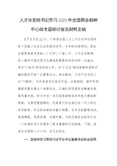人才办党组书记学习2025年全国两会精神中心组专题研讨发言材料例文